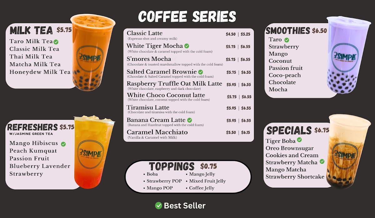 Welcome to 3Simple Coffee, Bubble Tea & Dessert, your new haven for exquisite beverages and delightful treats, located at 6310 Lake Worth Blvd, Lake Worth, TX. This cozy spot offers an enticing menu that beautifully merges innovative coffee options and flavorful bubble teas.